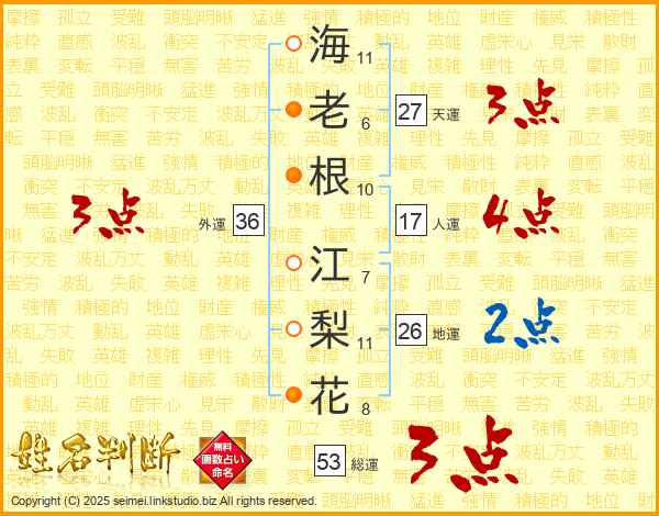 海老根江梨花さんの外運は36画の3点!