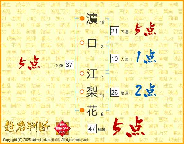 濵口江梨花さんの外運は37画の5点!
