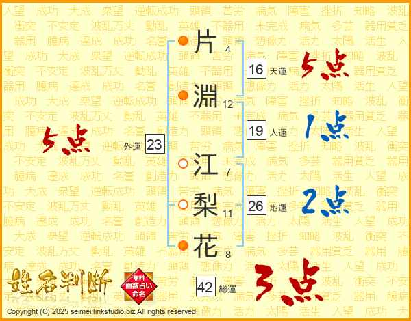 片淵江梨花さんの総運は42画の3点!