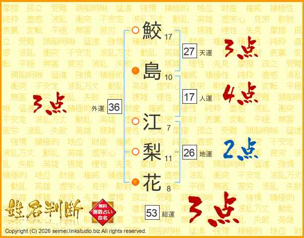 鮫島江梨花さんの総運は53画の3点!