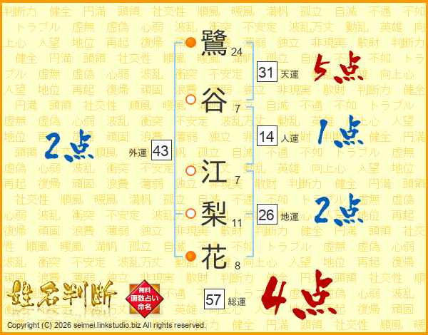 鷺谷江梨花さんの総運は57画の4点!