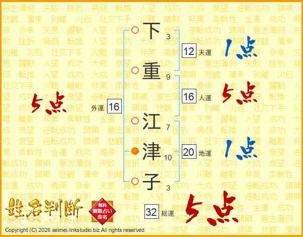 下(3画)重(9画) 江(7画)津(10画)子(3画)