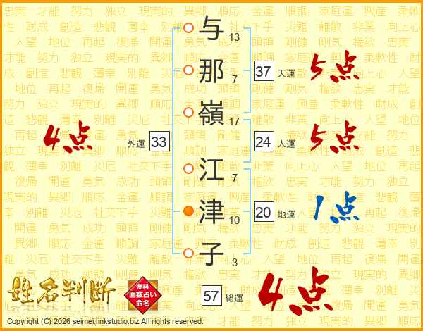 与那嶺江津子さんの総運は57画の4点!