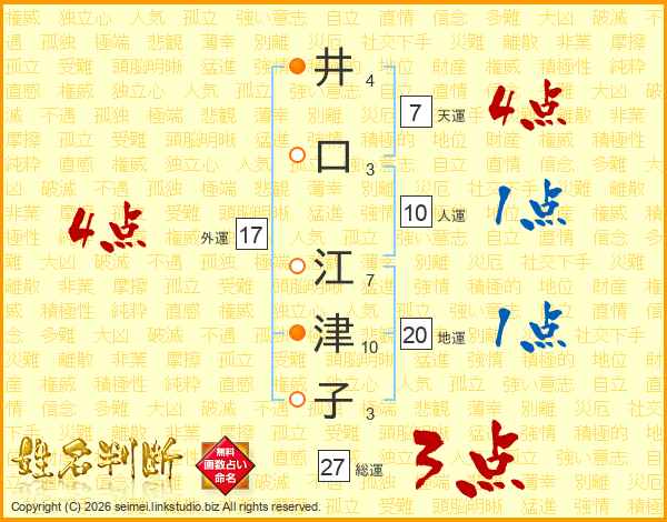 井(4画)口(3画) 江(7画)津(10画)子(3画)