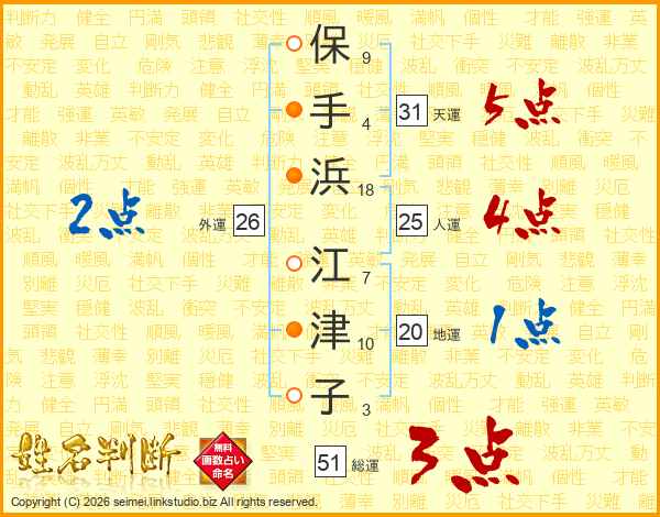 保手浜江津子さんの総運は51画の3点!