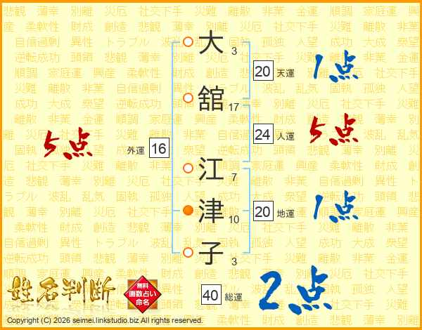 大舘江津子さんの総運は40画の2点!