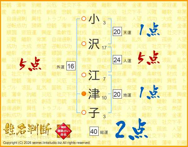 小沢江津子さんの総運は40画の2点!