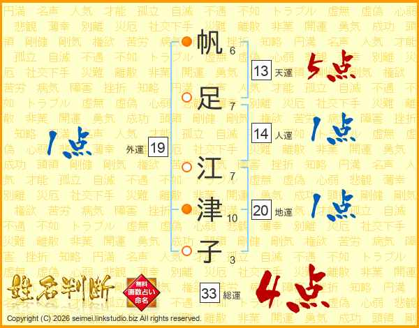 帆足江津子さんの総運は33画の4点!
