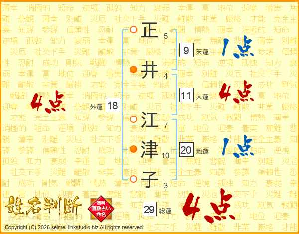 正井江津子さんの人運は11画の4点!