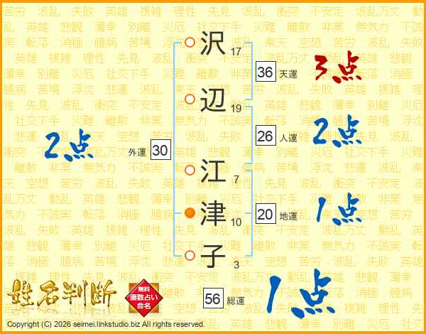 沢辺江津子さんの総運は56画の1点!
