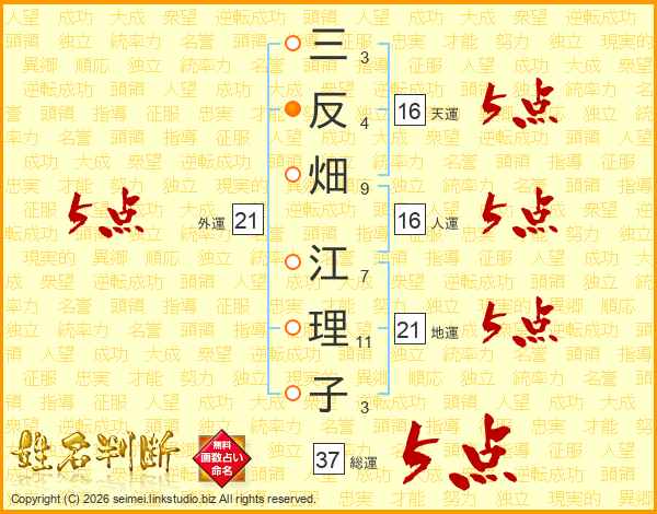 三(3画)反(4画)畑(9画) 江(7画)理(11画)子(3画)