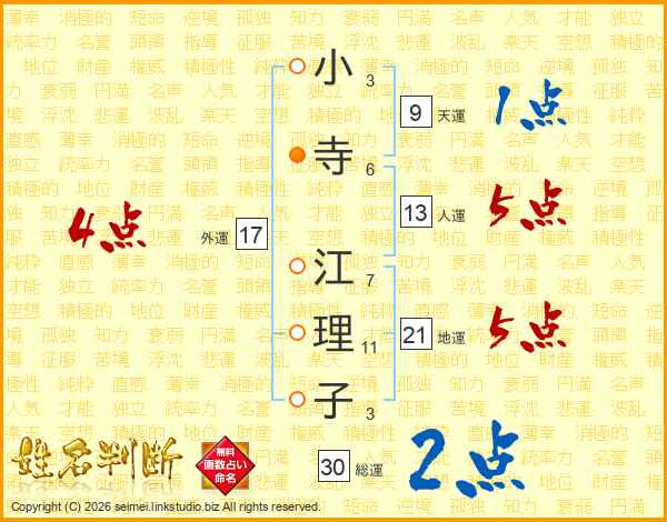 小寺江理子さんの総運は30画の2点!