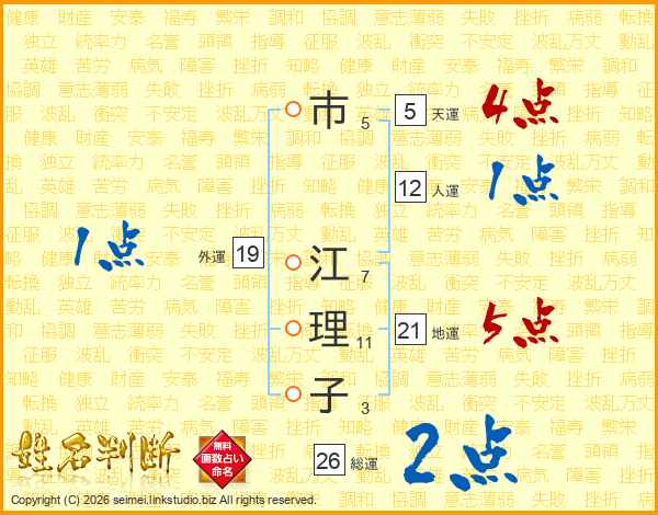 市江理子さんの総運は26画の2点!