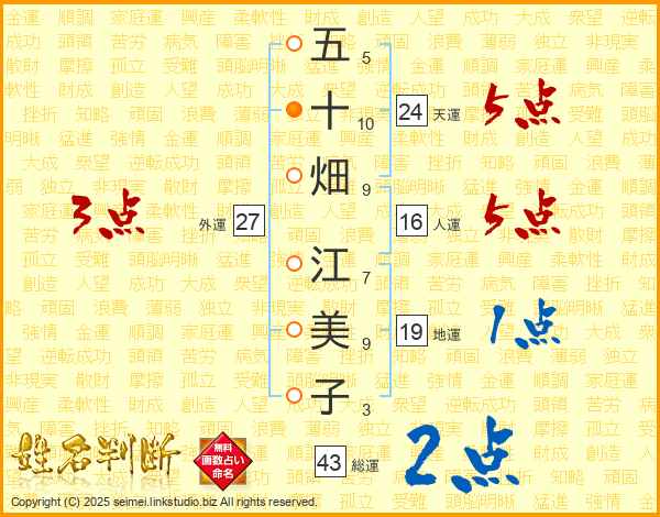 五(5画)十(10画)畑(9画) 江(7画)美(9画)子(3画)