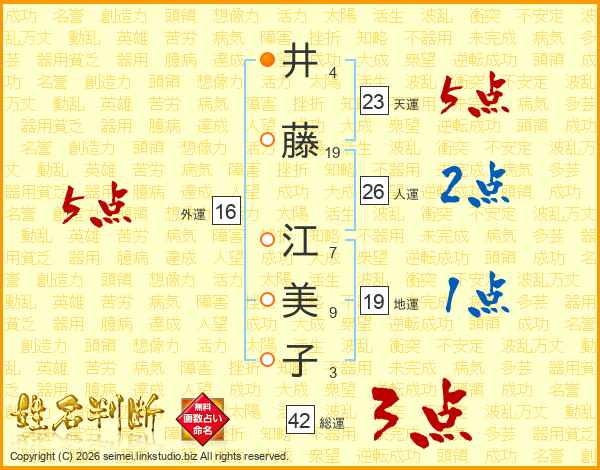 井(4画)藤(19画) 江(7画)美(9画)子(3画)