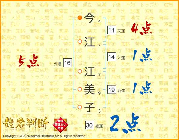 今江江美子さんの総運は30画の2点!