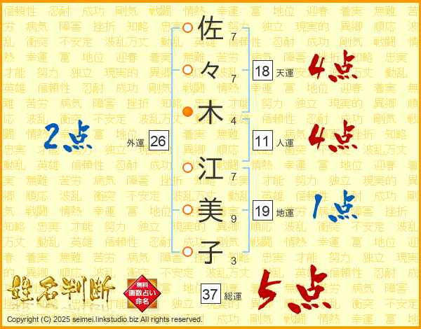 佐々木江美子さんの総運は37画の5点!