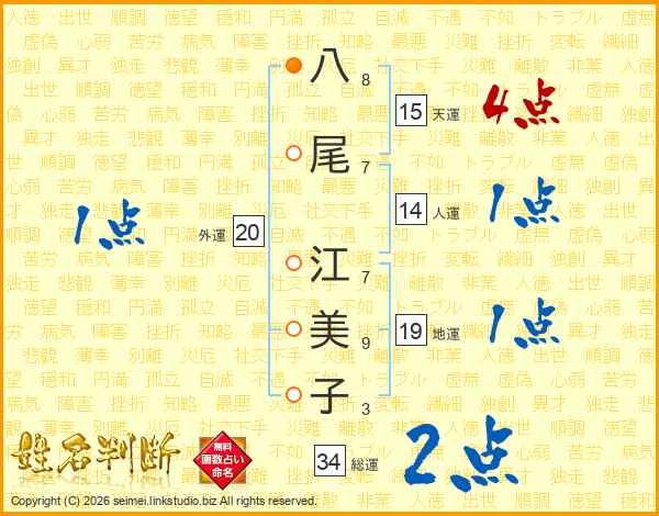八尾江美子さんの総運は34画の2点!