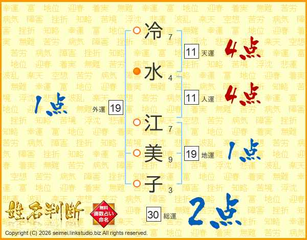 冷水江美子さんの総運は30画の2点!