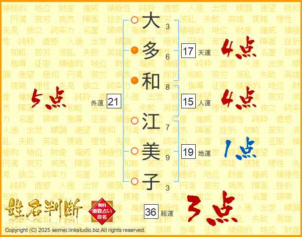 大多和江美子さんの天運は17画の4点!