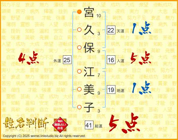宮久保江美子さんの天運は22画の1点!
