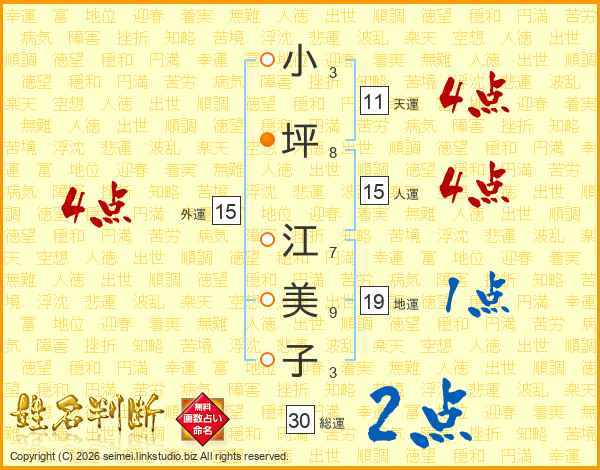 小(3画)坪(8画) 江(7画)美(9画)子(3画)