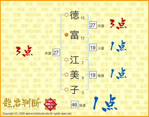 徳富江美子さんの天運は27画の3点!