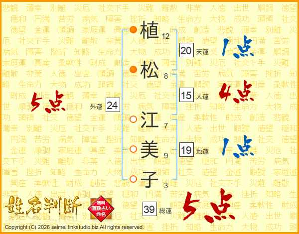 植松江美子さんの総運は39画の5点!