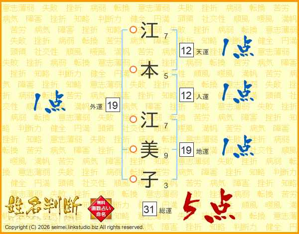 江本江美子さんの総運は31画の5点!