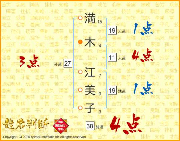 満木江美子さんの総運は38画の4点!