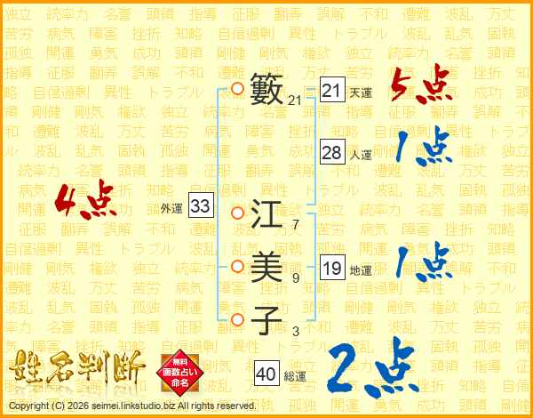 籔江美子さんの総運は40画の2点!