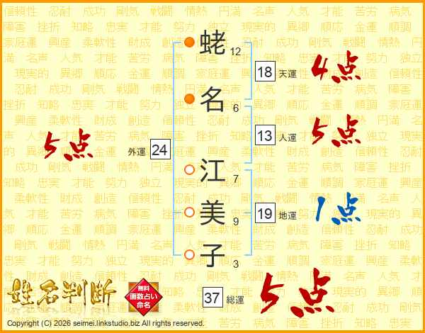 蛯名江美子さんの天運は18画の4点!
