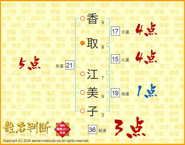 香取江美子さんの総運は36画の3点!