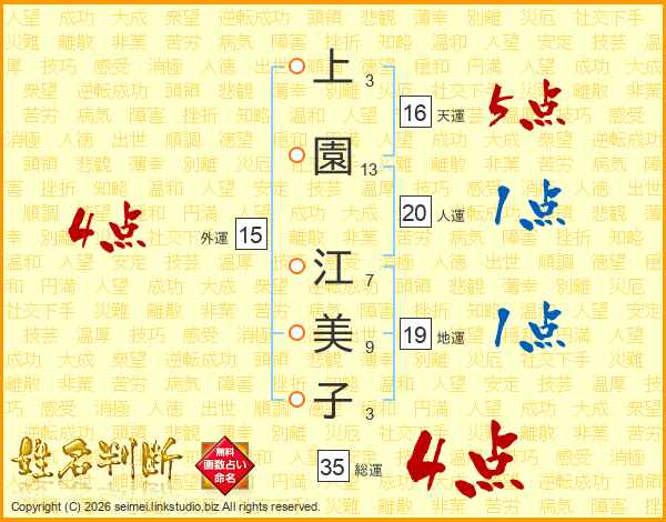 上園江美子さんの外運は15画の4点!