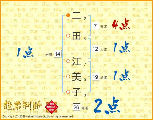 二田江美子さんの総運は26画の2点!