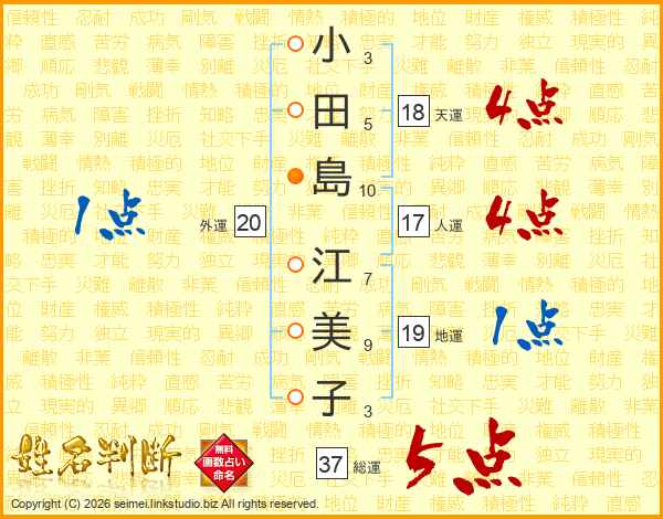 小田島江美子さんの総運は37画の5点!