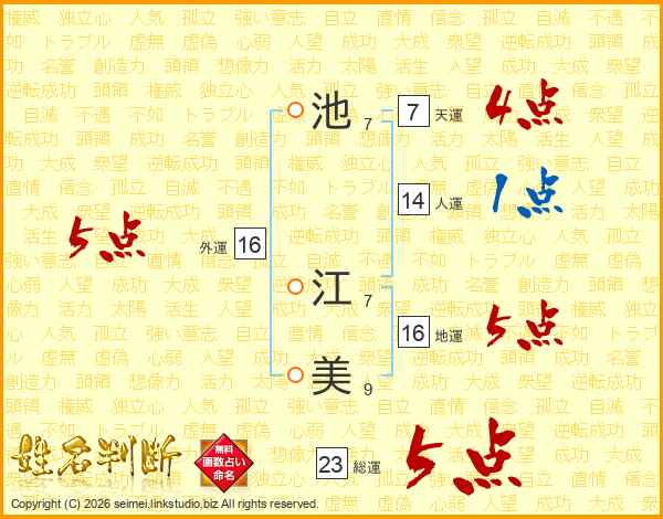 池江美さんの総運は23画の5点!