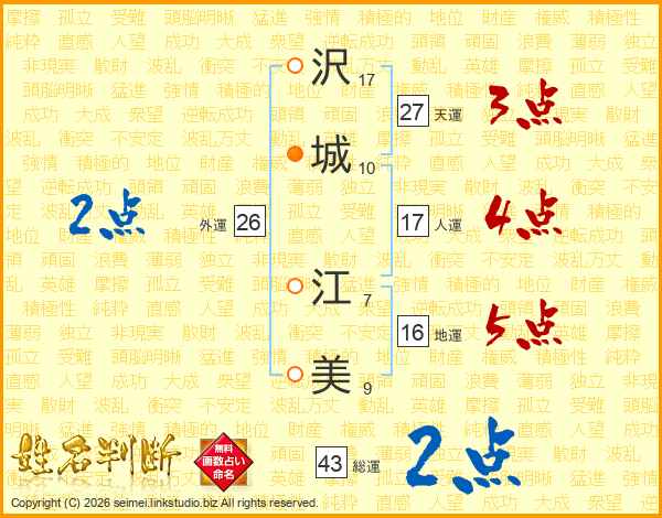 沢(17画)城(10画) 江(7画)美(9画)