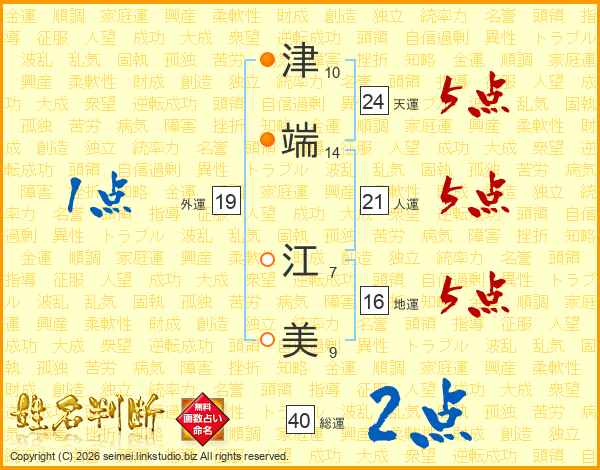 津(10画)端(14画) 江(7画)美(9画)