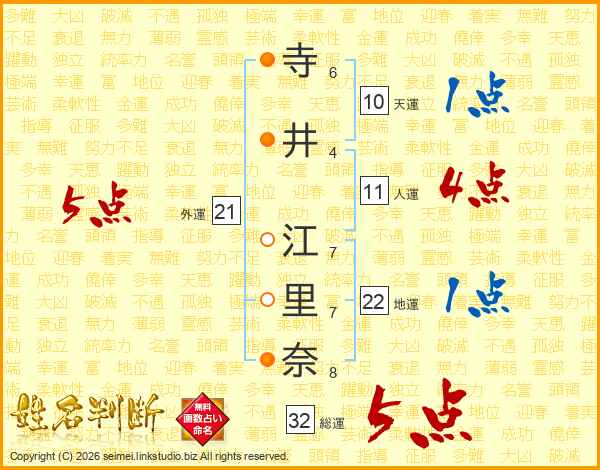 寺井江里奈さんの総運は32画の5点!