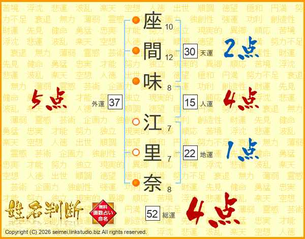 座間味江里奈さんの総運は52画の4点!