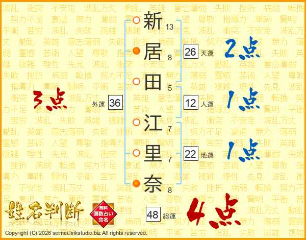 新居田江里奈さんの総運は48画の4点!