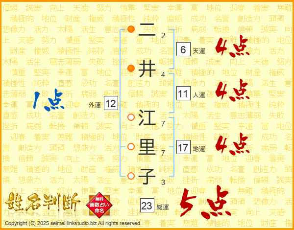 二(2画)井(4画) 江(7画)里(7画)子(3画)
