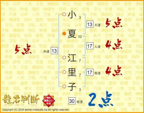 小夏江里子さんの外運は13画の5点!