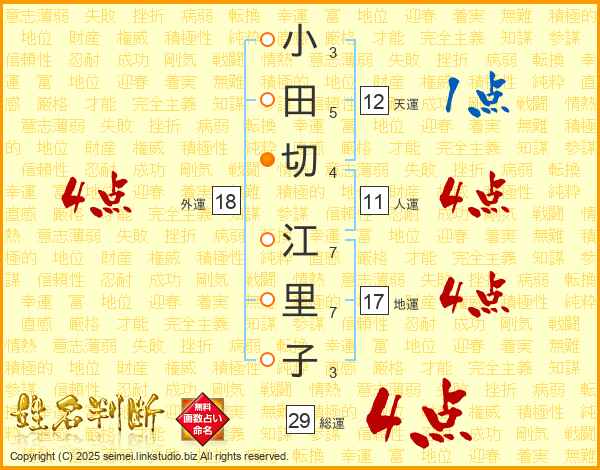 小田切江里子さんの総運は29画の4点!