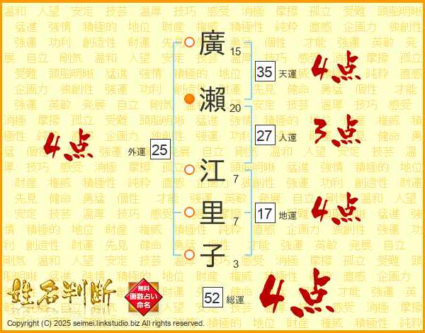 廣瀨江里子さんの総運は52画の4点!