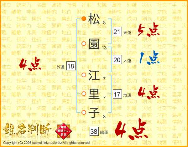 松園江里子さんの総運は38画の4点!