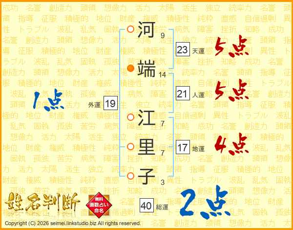 河端江里子さんの天運は23画の5点!