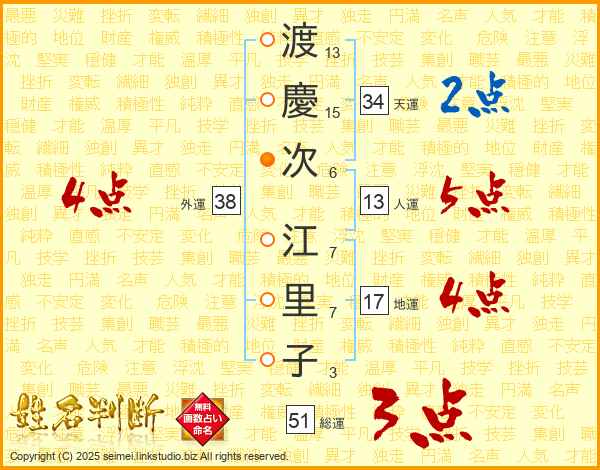 渡慶次江里子さんの外運は38画の4点!