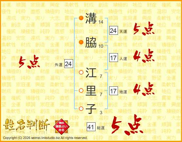 溝脇江里子さんの総運は41画の5点!